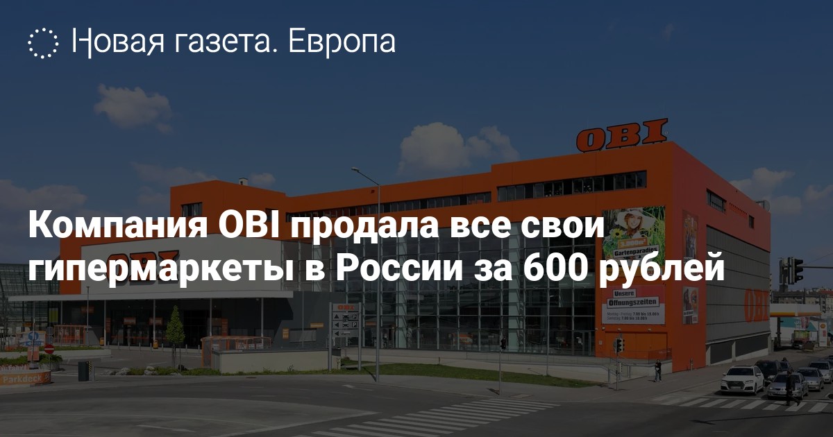 Немецкая компания OBI GmbH продала все 27 российских гипермаркетов сети за 600 рублей. Об этом в интервью Forbes рассказал новый владелец российского бизнеса компании Йозеф Лиокумович.