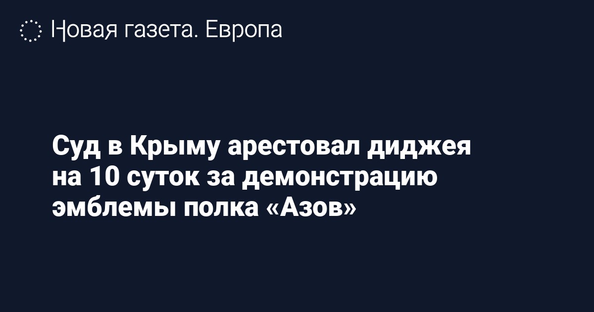 Ленинский районный суд Крыма арестовал на 10 суток местного диджея за публичную демонстрацию нацистской символики (ч. 1 ст. 20.3 КоАП). Об этом сообщает пресс-служба суда.