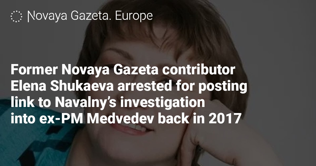 A court in Russia’s Yekaterinburg has arrested former Novaya Gazeta (Moscow) contributor Elena Shukaeva for 14 days, Roman Kachanov, an attorney with OVD-Info, a Russian human rights organisation that monitors political arrests, reports.