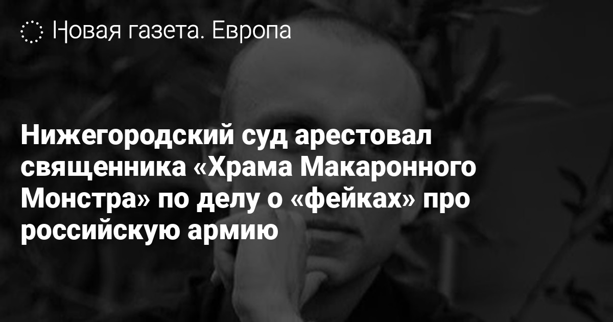 Советский районный суд Нижнего Новгорода отправил в СИЗО священника «Храма Макаронного Монстра» Алексея Оношкина по делу о распространении «фейков» про действия российской армии с разжиганием ненависти (п. «д» ч. 2 ст. 207.3 УК РФ). Об этом сообщает проект «Забрало».