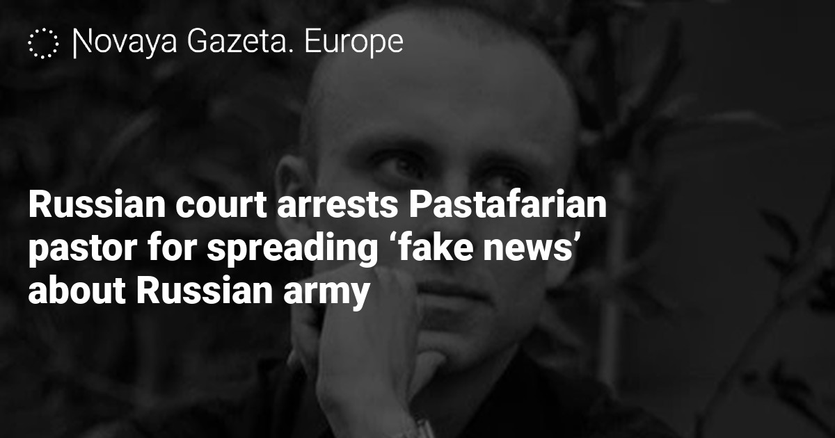 A court in Russia’s Nizhny Novgorod has arrested Aleksey Onoshkin, a pastor of the Church of the Flying Spaghetti Monster, for spreading “fake news” about the Russian army with the aim of inciting hatred, Zabralo human rights project reports.