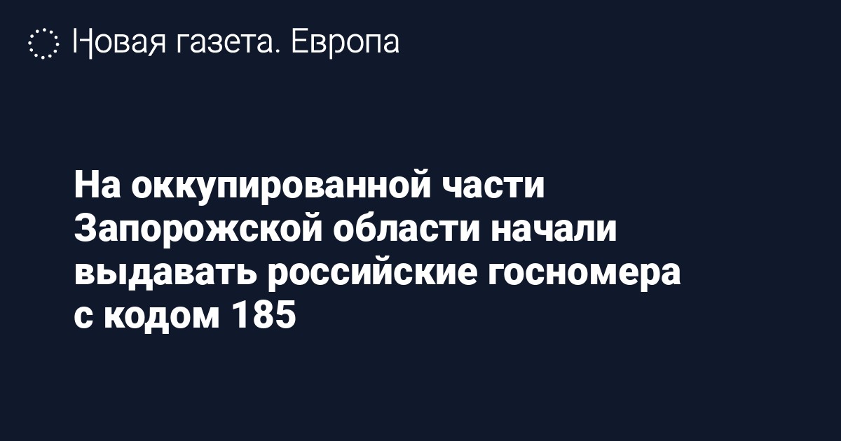 На оккупированной Россией части Запорожской области начали выдавать водительские удостоверения российского образца и госномера на автомобили с кодом региона 185. Об этом пишет «Интерфакс».