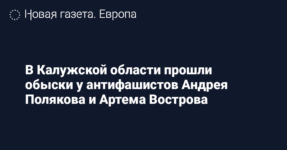 В Калужской области прошли обыски у антифашистов Андрея Полякова и Артема Вострова