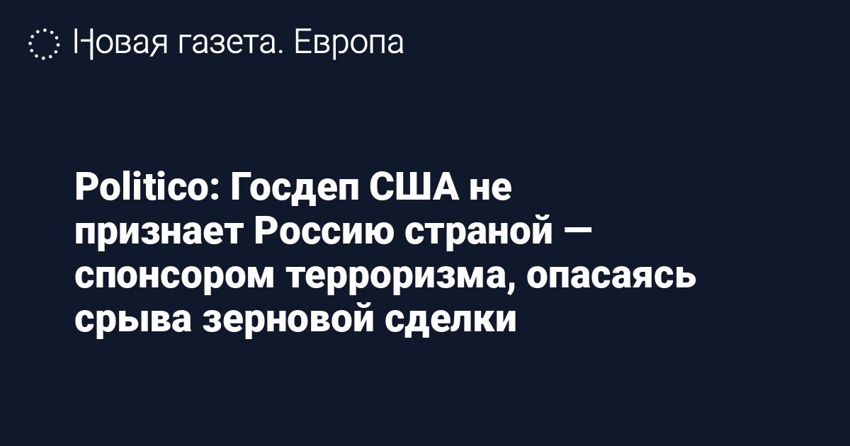 «Государство опасается, что включение России в список государств-спонсоров терроризма поставит под угрозу хрупкую сделку, позволяющую судам с зерном покидать украинские порты. На достижение этой договоренности ушли месяцы, и хотя суда постепенно начинают выходить из Черного моря, нет никаких гарантий, что Россия выполнит свои обязательства, если станет объектом прямого "нападения" со стороны Соединенных Штатов», — заявил собеседник издания.