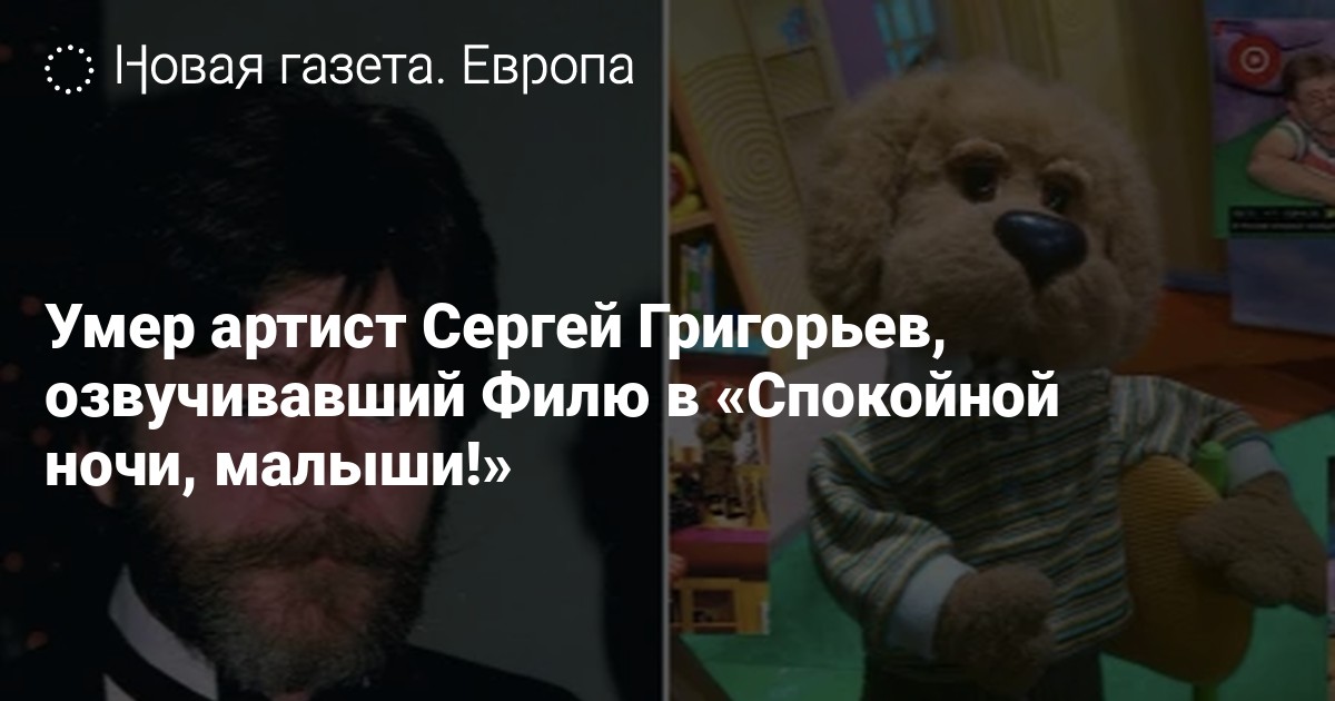 В Израиле умер артист Сергей Григорьев, который озвучивал пса Филю в передаче «Спокойной ночи, малыши!» с 1987 по 2014 год. Об этом сообщает РБК.
