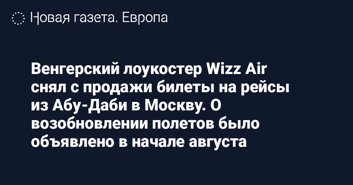 О том, что Wizz Air возобновит полеты из Абу-Даби в Москву сообщалось в начале августа. Авиакомпания приостановила все рейсы в Россию в апреле из-за вторжения России в Украину.