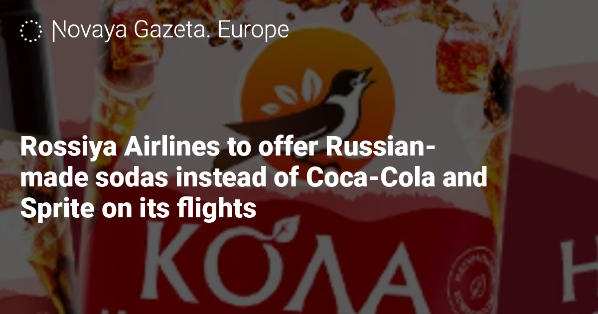 Rossiya Airlines to offer Russian-made sodas instead of Coca-Cola and Sprite on its flights