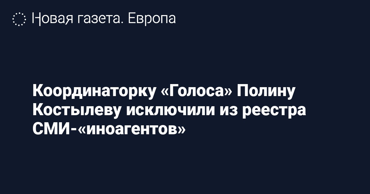 Минюст исключил координаторку движения «Голос» Полину Костылеву из реестра СМИ-«иноагентов». Об этом сообщается на сайте ведомства.