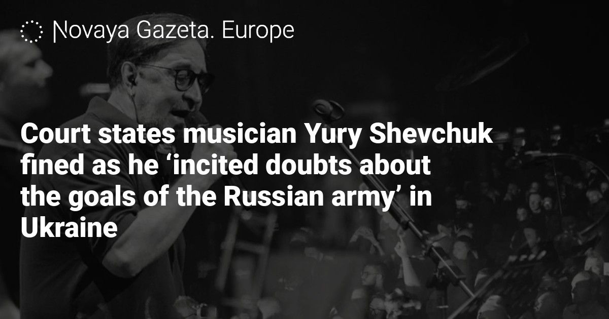 Musician Yuri Shevchuk was fined 50,000 roubles (close to $835) on 16 August. The musician’s defence voiced his position on “discrediting” the Russian army in court — Shevchuk said that he had always been against wars, in any country and at any time.