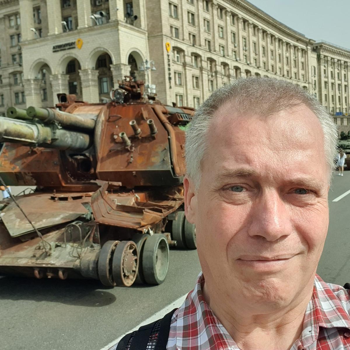 Сожженная российская военная техника на Крещатике — там, где Путин собирался провести парад. Киев, 24 августа 2022 г. Фото: Йенс Альструп, специально для «Новой газеты. Европа»