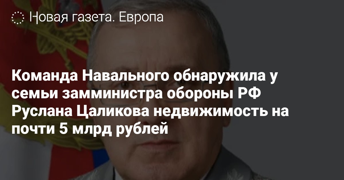 У семьи заместителя министра обороны Руслана Цаликова есть имущество стоимостью почти 5 млрд рублей. Расследование опубликовано на Youtube-канале «Навальный Live».