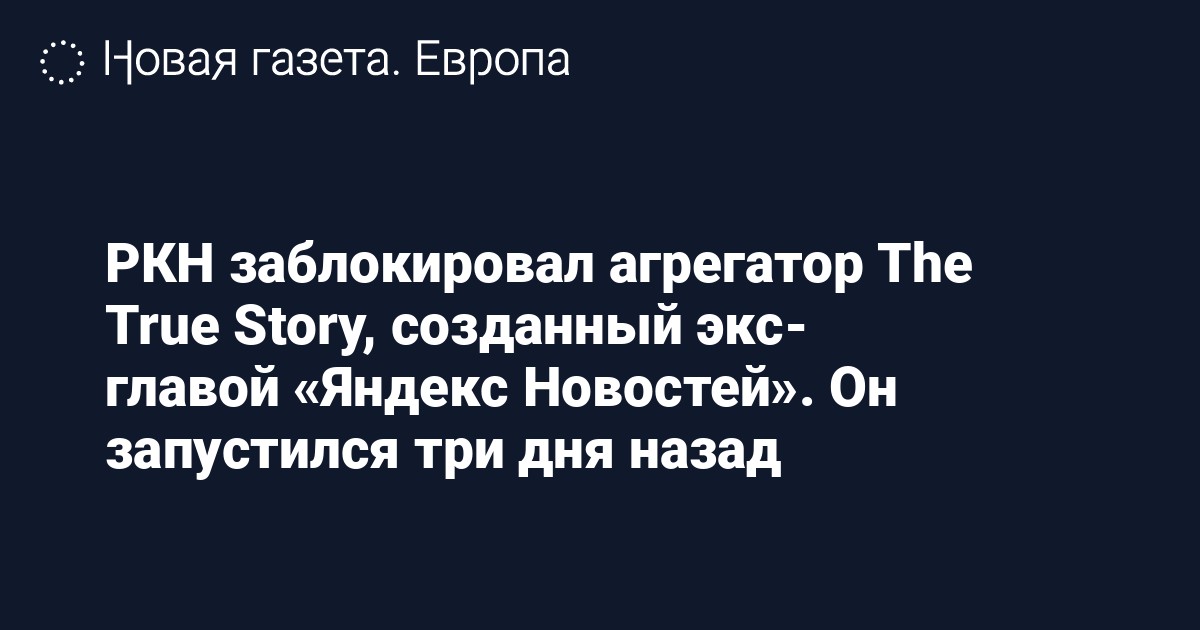 Роскомнадзор внес в реестр запрещенных сайтов новостной агрегатор The True Story, который создал бывший глава «Яндекс Новостей» Лев Гершензон. Об этом свидетельствует реестр, который ведет проект «Роскомсвобода».