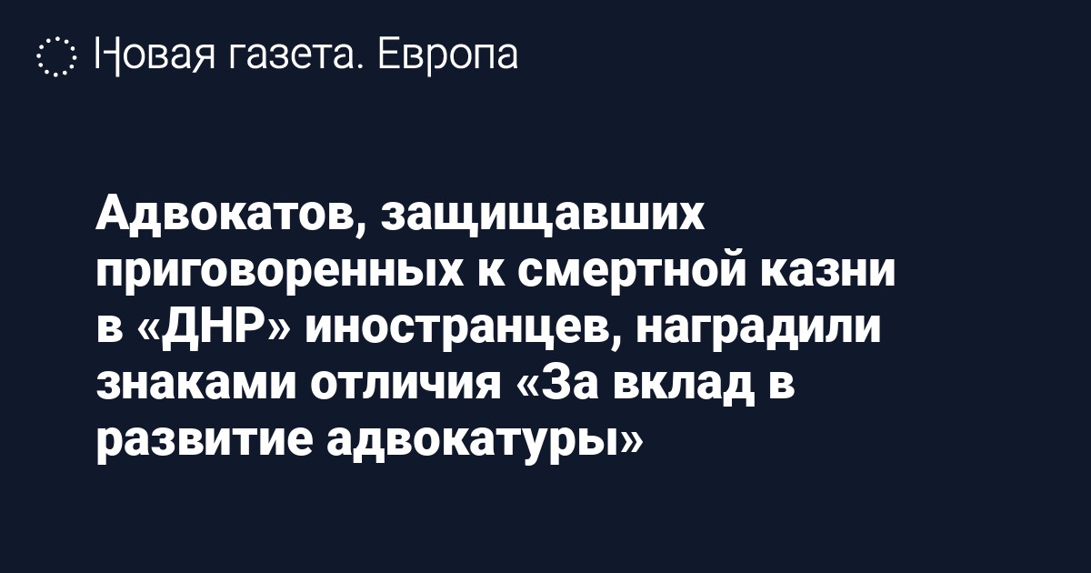 9 июня «Верховный суд» «ДНР» приговорил к смертной казни трех иностранцев по делу об участии в боевых действиях на стороне Украины. Приговор вынесли двум гражданам Великобритании Шону Пиннеру и Эйдену Аслину, а также подданному Марокко Саадуну Брагиму. Мужчинам вменили в вину наемничество (ст. 440 УК «ДНР») и насильственный захват власти группой лиц (ч. 2 ст. 34; ст. 323 УК «ДНР»). Смертную казнь предусматривает последняя статья — с учетом того, что преступление якобы было совершено в военное время. Их защищали адвокаты Игорь Вагин и Дмитрий Ершов.