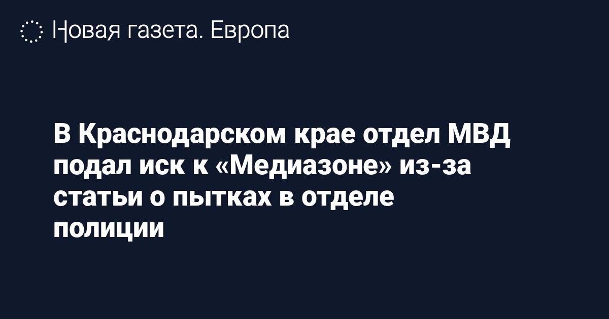 В Краснодарском крае отдел МВД подал иск к «Медиазоне» из-за статьи о пытках в отделе полиции
