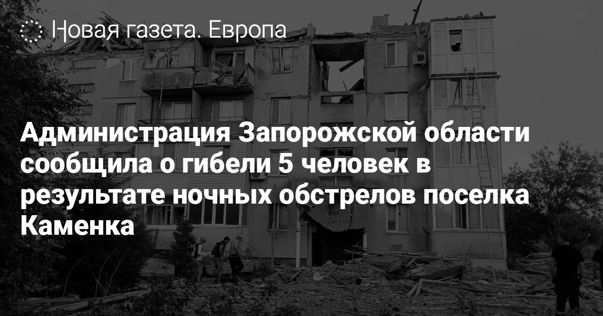 Глава администрации Запорожской области Александр Старух сообщил о пяти погибших в результате ночных обстрелов поселка Каменка, трое из них — мать и двое ее детей двух и восьми лет. Информация опубликована в телеграме.