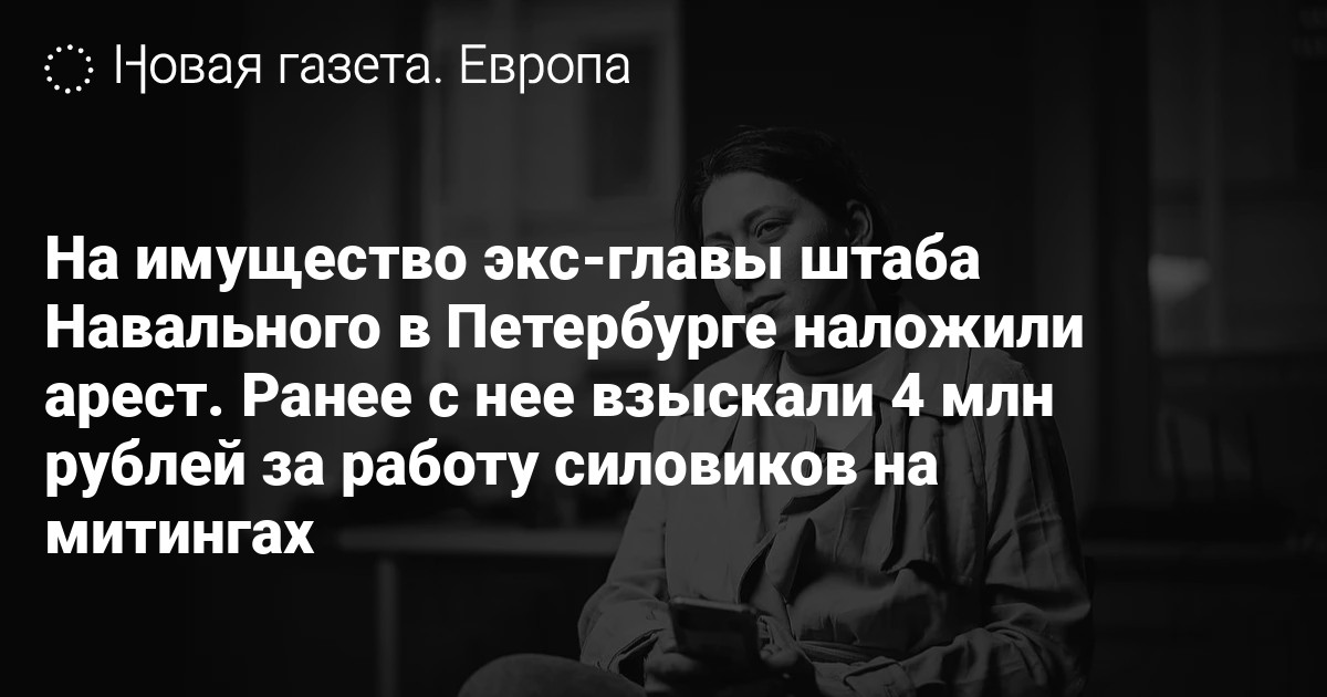 На имущество экс-главы штаба Навального в Петербурге наложили арест. Ранее с нее взыскали 4 млн рублей за работу силовиков на митингах