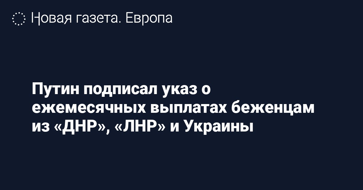 Президент России Владимир Путин подписал указ о ежемесячной пенсионной выплате беженцам из самопровозглашенных Донецкой народной республики («ДНР»), Луганской народной республики («ЛНР») и Украины.