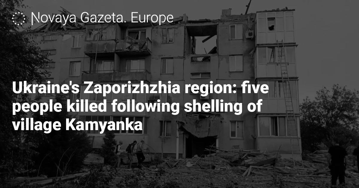 Head of Ukraine's Zaporizhzhia region administration Oleksandr Starukh said in a message on his Telegram channel that five people had been killed following the night shelling of the village Kamyanka; three of them were a mother and her two children, aged two and eight.