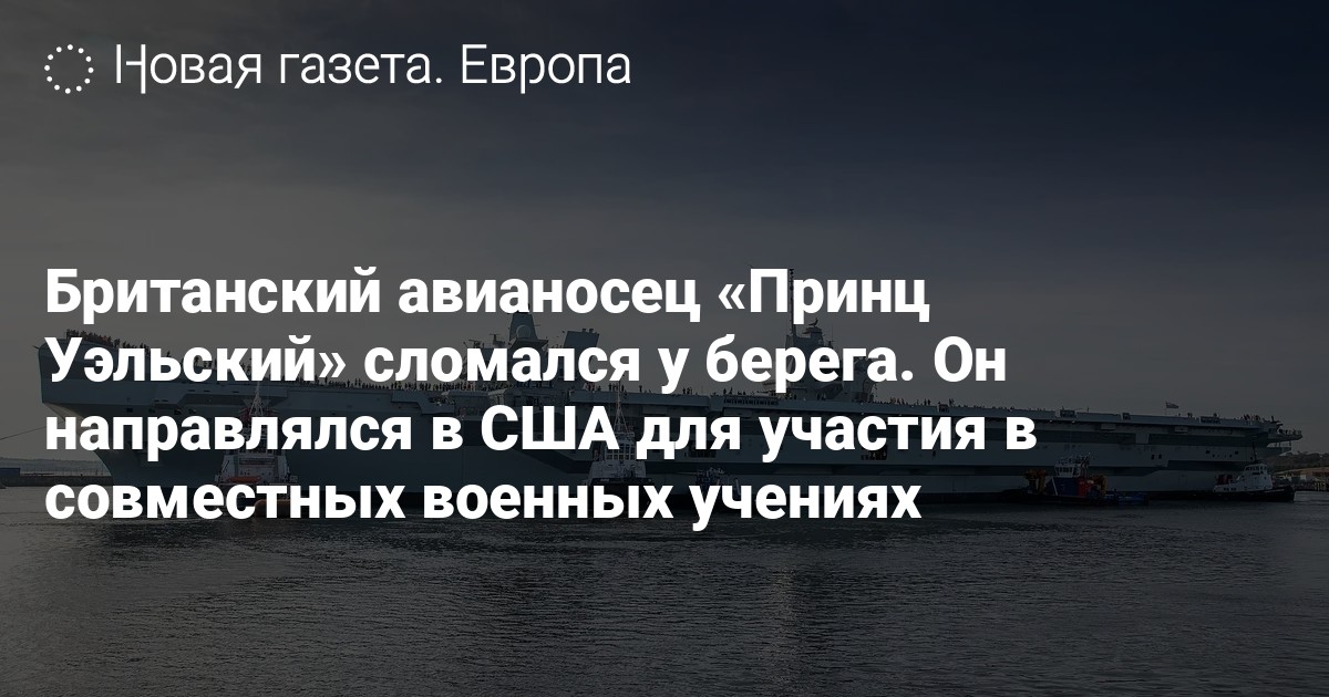 Крупнейший авианосец британского королевского флота HMS Prince of Wales («Принц Уэльский») сломался после того, как отошел от берегов Великобритании для участия в совместных с США военных учениях. Об этом рассказал канал Sky News.