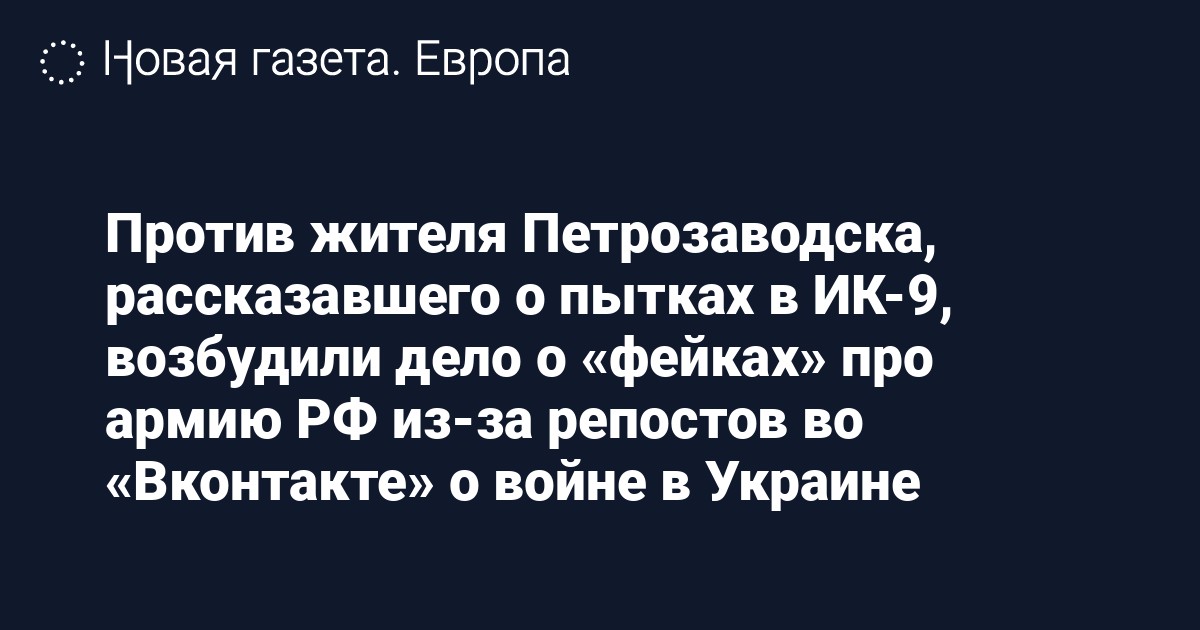 Против Жителя Петрозаводска Рубена Погосяна возбудили уголовное дело о «фейках» про российскую армию (ст. 207.3 УК) из-за апрельских репостов во «Вконтакте» о событиях в Буче, Мариуполе и Краматорске. Об этом сообщает проект «Сетевые свободы».