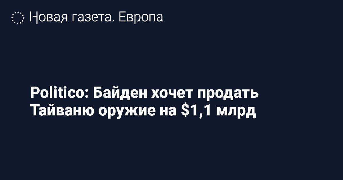 Администрация президента США Джо Байдена планирует официально попросить Конгресс одобрить продажу Тайваню оружия на сумму около $1,1 млрд. Об этом сообщает газета Politico со ссылкой на три источника