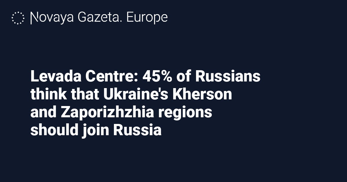 Almost half (45%) of Russians think that Ukraine’s Kherson and Zaporizhzhia regions should become parts of Russia, according to a survey (reviewed by Novaya Gazeta. Europe) conducted by Levada Centre, a Russian independent polling organisation.