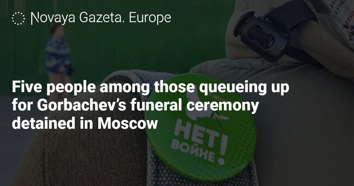 Moscow police detained five people who were among those queueing up for Mikhail Gorbachev’s funeral ceremony at the House of the Unions, OVD-Info, a human rights group that monitors political arrests, reports.