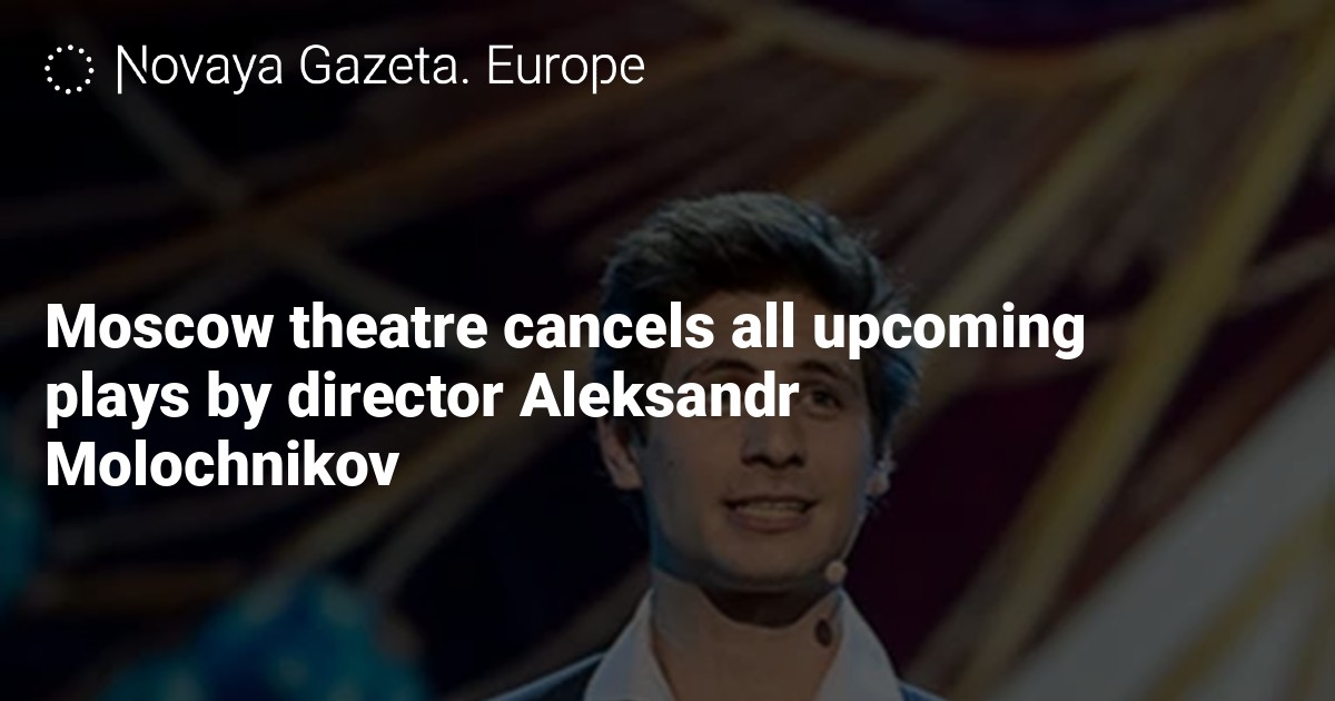 The Moscow Drama Theatre on Malaya Bronnaya has cancelled all upcoming plays by director Aleksandr Molochnikov, Theatre magazine reports, citing the director himself.