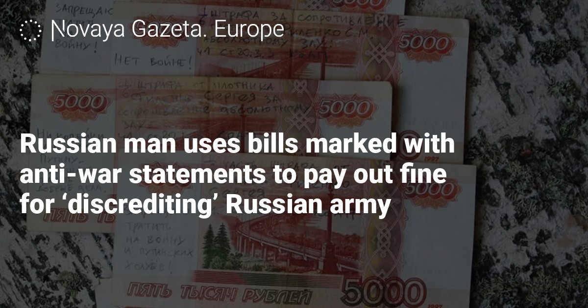 Sergey Filenko, a carpenter, writer and blogger from Russia’s Petrozavodsk, used bills marked with anti-war statements to pay out his fine for “discrediting” the Russian army, he wrote on Facebook.
