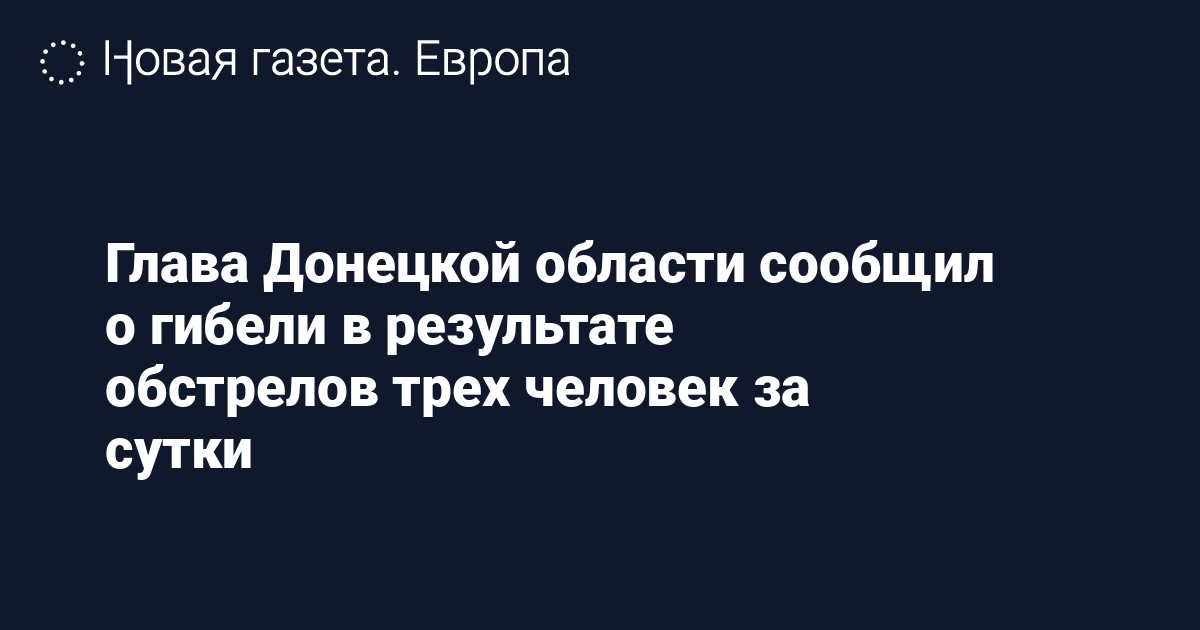 В Донецкой области за сутки в результате обстрелов погибли три мирных жителя. Об этом сообщил в телеграм-канале глава местной администрации Павел Кириленко.
