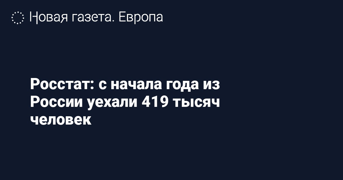 Из России с начала года выехали 419 тысяч человек, это в два раза больше, чем за аналогичный период в 2021 году. Об этом сообщает РБК со ссылкой на данные Росстата.