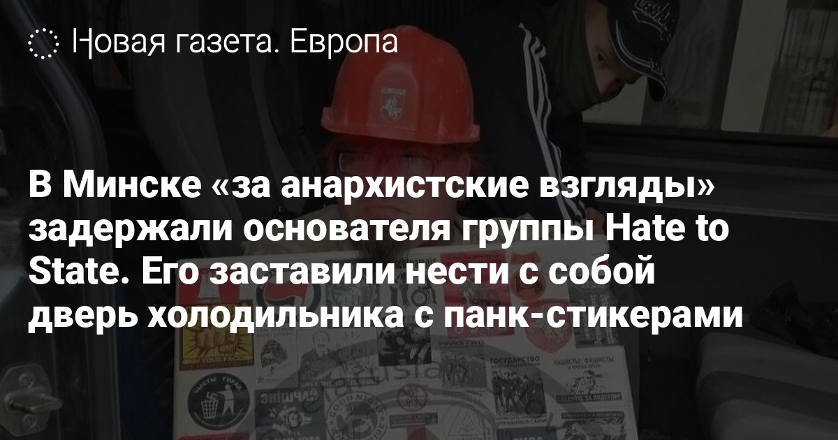 В телеграм-каналах распространилось видео, как Жаркевич несет в наручниках дверь от холодильника, заклеенную анархическими и другими протестными стикерами. На голове у него красная каска с погоней. Конвой в видео одет в спортивные костюмы, кепки, лица их скрыты под масками, из-под которых видны только глаза и нос, отмечает издание.