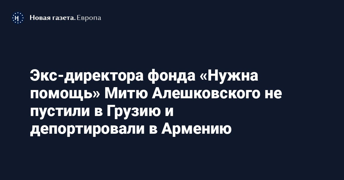 Сооснователя фонда «Нужна помощь» и издания «Такие дела» Митю Алешковского не пустили в Грузию и депортировали в Армению. Об этом в фейсбуке сообщила его мать, историк Тамара Эйдельман.