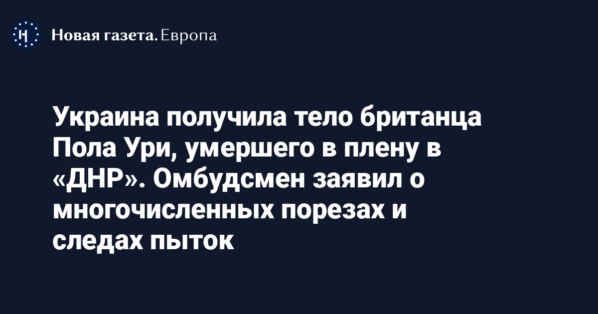 После полутора месяцев переговоров Россия вернула Украине тело британского подданного Пола Ури, который умер в плену в самопровозглашенной ДНР. Об этом сообщил уполномоченный по правам человека Верховной Рады Украины Дмитрий Лубинец.