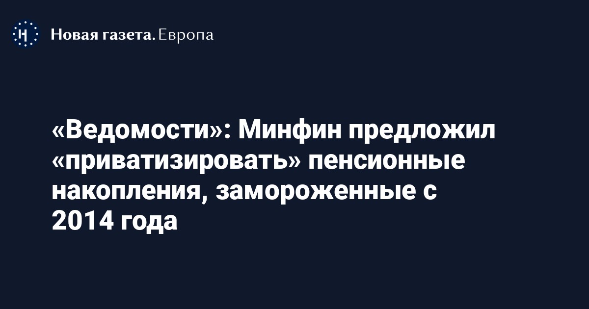 Предложение провести «приватизацию» пенсионных накоплений граждан было предложено министром финансов Антоном Силуановым и председателем ЦБ Эльвирой Набиуллиной, пишет газета. Речь идет о предоставлении гражданам, у которых есть пенсионные накопления, права инвестировать их по своему выбору, но при условии соблюдения определенных критериев, заявил источник газеты.