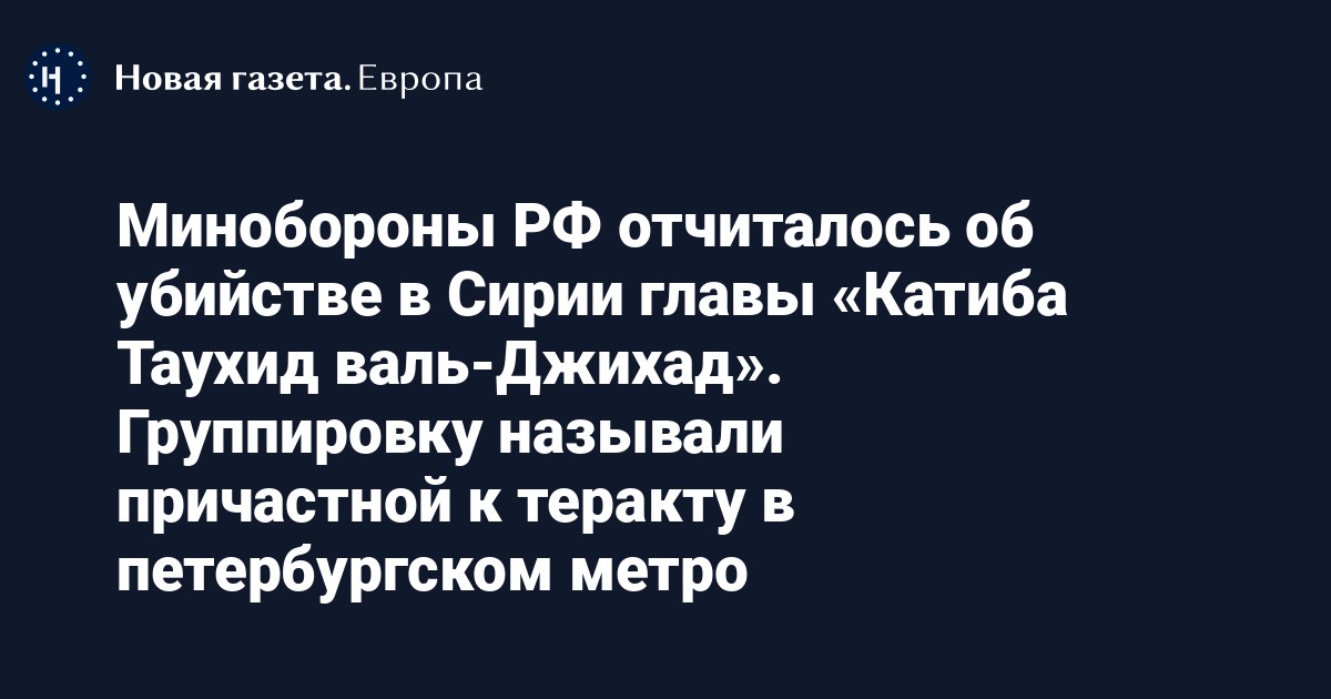 В Министерстве обороны РФ отчитались об убийстве лидера террористической группировки «Катиба Таухид валь-Джихад» Сирожиддина Мухтарова. Об этом говорится в материалах брифинга Центра по примирению враждующих сторон и контролю за перемещением беженцев в Сирии.
