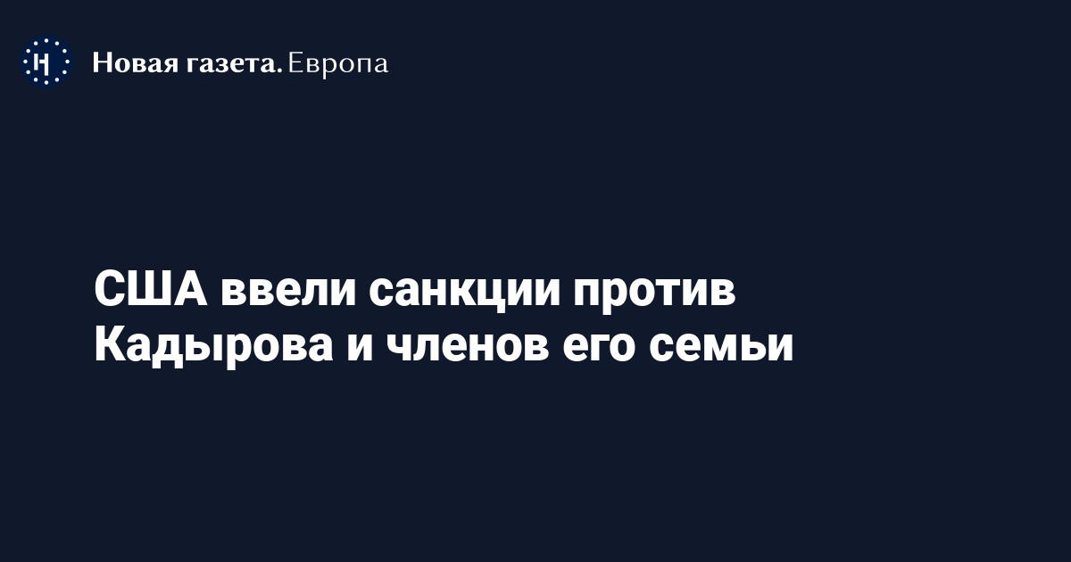 Минюст США ввел санкции против главы Чечни Рамзана Кадырова и членов его семьи. Об этом сообщается на сайте американского Минюста.