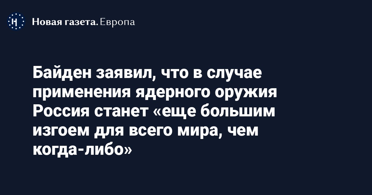 Байден заявил, что в случае применения ядерного оружия Россия станет «еще большим изгоем для всего мира, чем когда-либо»