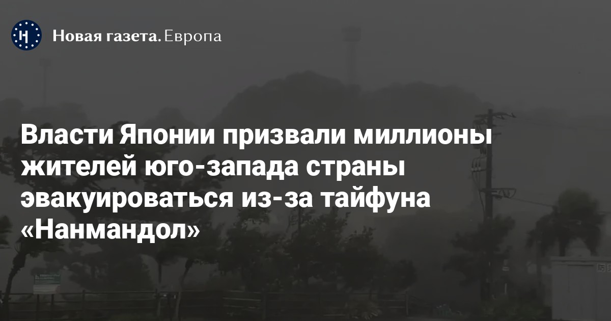 Власти Японии рекомендовали миллионам жителей юго-западных регионов страны покинуть свои дома и эвакуироваться в более безопасное место из-за тайфуна «Нанмандол». Об этом сообщают NHK, The Washington Post и The Japan Times.