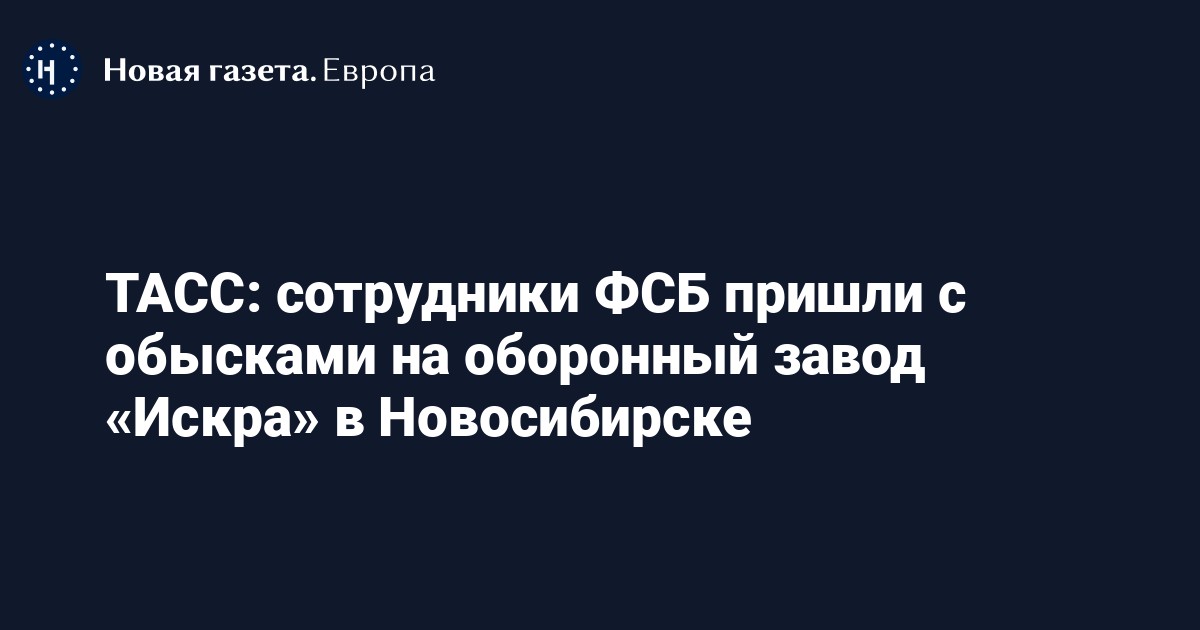 Сотрудники ФСБ пришли с обысками на оборонный завод «Искра» в Новосибирске. Об этом сообщает ТАСС со ссылкой на источники в правоохранительных органах, а также ngs.ru со ссылкой на источники.