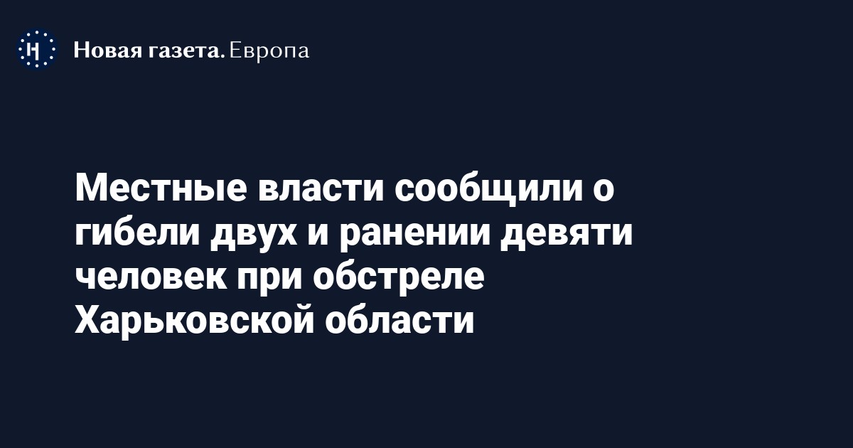 В результате обстрела села Грушевка в Купянской районе Харьковской области погибли два человека. Об этом сообщает глава администрации региона Олег Синегубов.