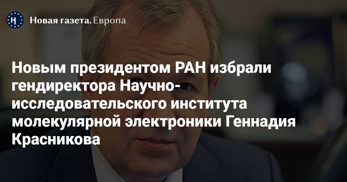 Новым президентом Российской академии наук (РАН) избран гендиректор Научно-исследовательского института молекулярной электроники Геннадий Красников. Об этом сообщается в телеграм-канале академии.