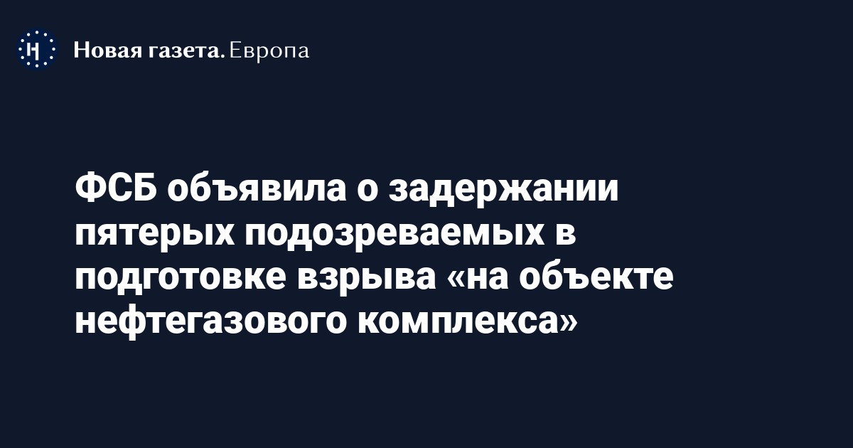 ФСБ утверждает, что задержала пятерых человек, заподозрив их в подготовке взрыва «на объекте нефтегазового комплекса». Об этом говорится на сайте службы.
