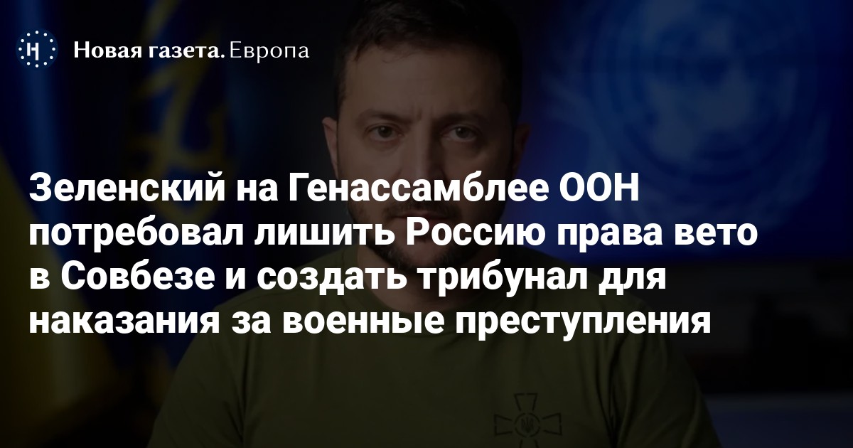 В качестве наказания для России помимо трибунала Зеленский предложил лишить страну права вето в Совбезе ООН.