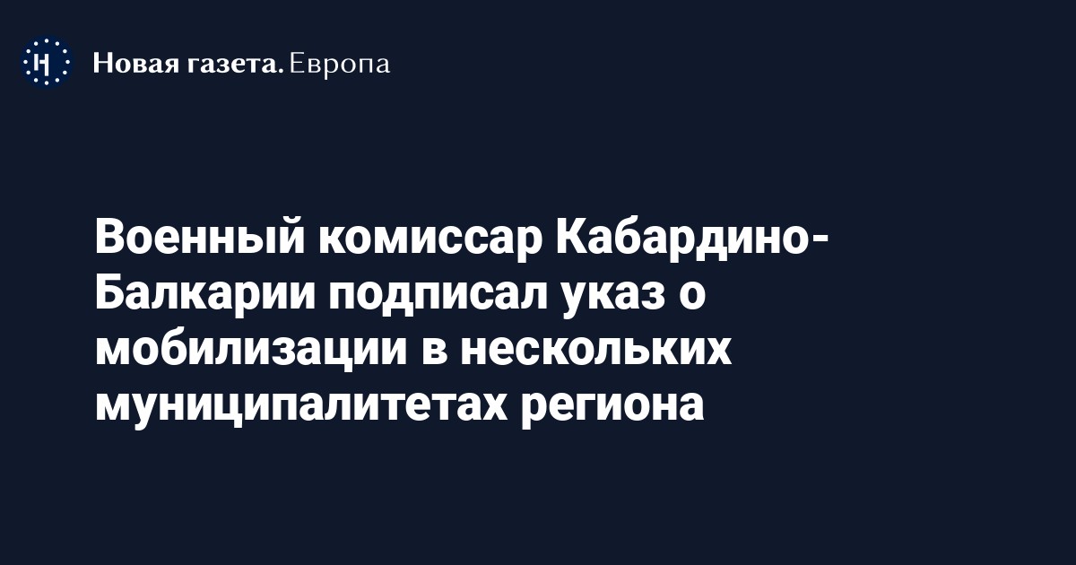 Военный комиссар Кабардино-Балкарской республики Дмитрий Пахомов подписал указ о частичной мобилизации в городском округе Баксан, а также в Баксанском и Зольском районах. Документ опубликовали в официальном телеграм-канале администрации Баксанского района.