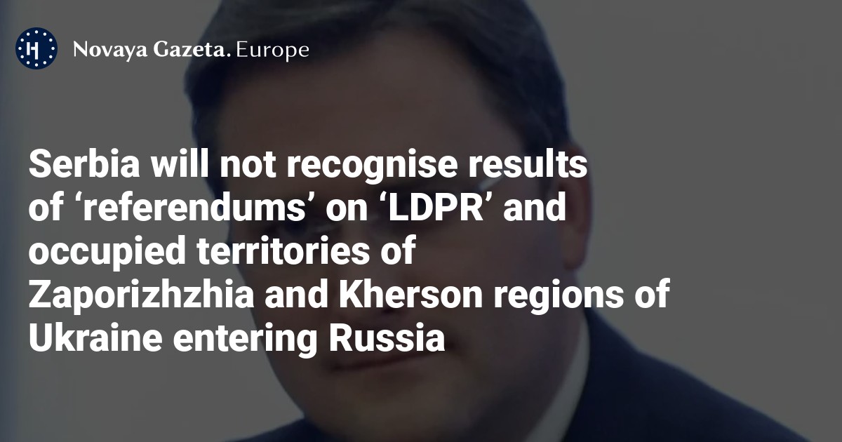 Serbia will not recognise results of ‘referendums’ on ‘LDPR’ and occupied territories of Zaporizhzhia and Kherson regions of Ukraine entering Russia