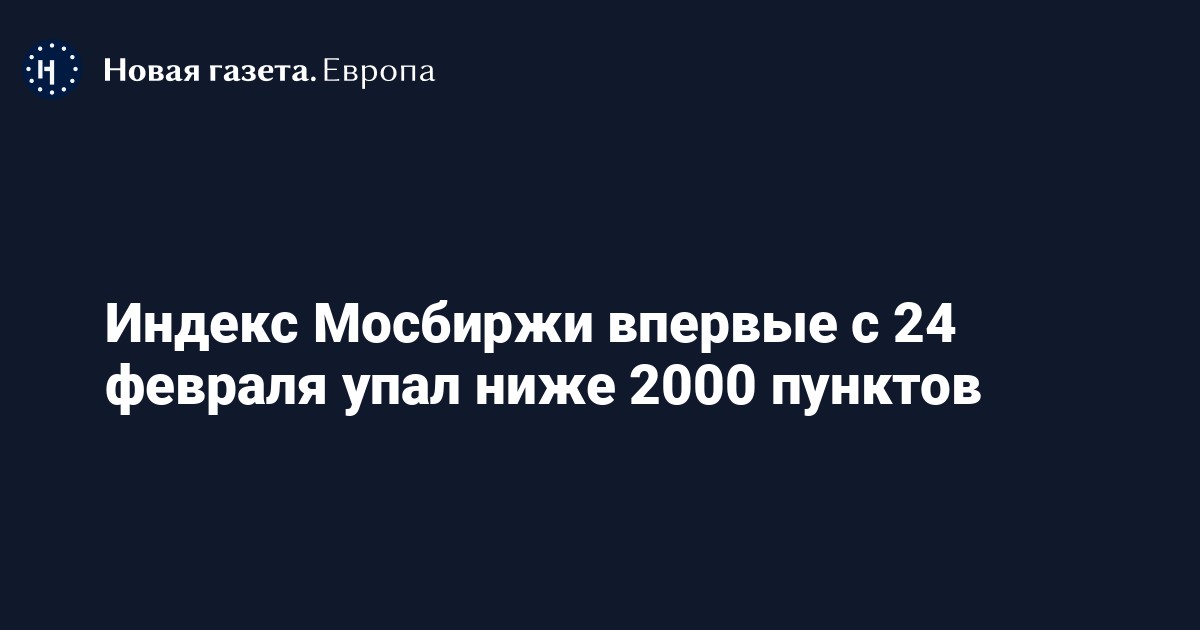 Индекс Мосбиржи впервые с 24 февраля упал ниже 2000 пунктов, следует из данных MOEX.
