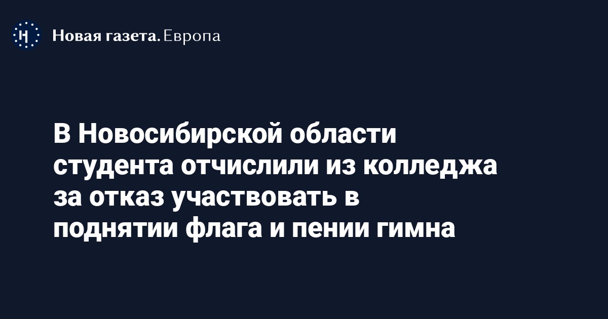 В поселке Колывань Новосибирской области первокурсника по имени Эдуард (его фамилия не уточняется) отчислили из местного аграрного колледжа за то, что он отказался участвовать в патриотическом мероприятии по поднятию флага и исполнению гимна. Об этом рассказали «@сибирьмедиа» и «Тайга.инфо».