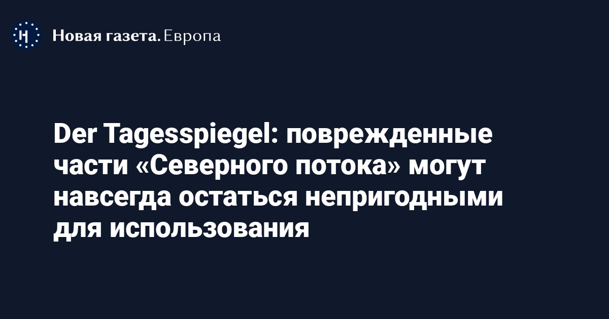 Der Tagesspiegel: поврежденные части «Северного потока» могут навсегда остаться непригодными для использования