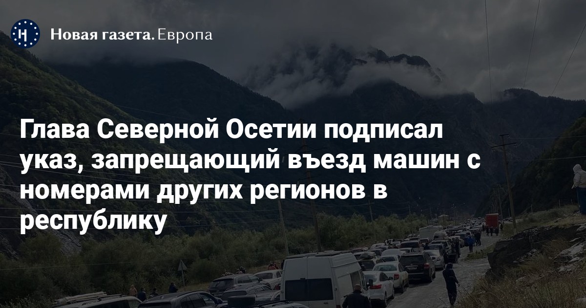 Глава Северной Осетии Сергей Меняйло подписал указ «О введении режима повышенной готовности» в регионе, запрещающий въезд автомобилей с номерами других регионов в республику. Документ опубликован на официальном сайте республики.